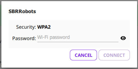 Connect the Ethernet cable to your Internet box. For further details, see: Plugging my robot to Ethernet. The Wired network appears in the list.